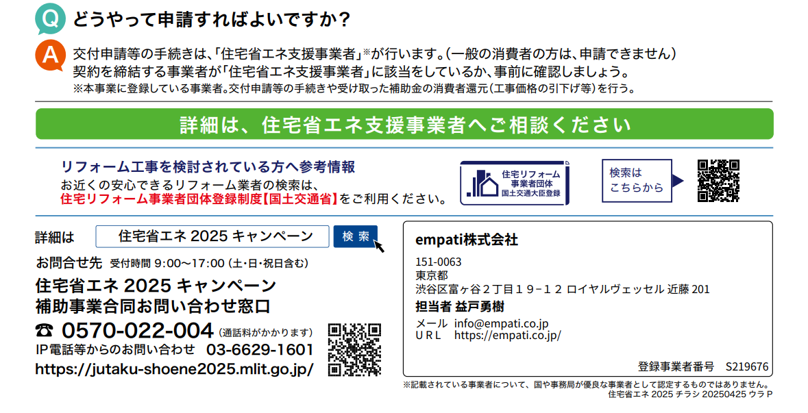 empati株式会社では、申請の手続きから施工までワンストップでサポート。